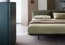 Изголовье кровати мягкое и уютное, состоит из двух подушек. Они украшены строчкой. Обивка доступна в ткани или кожи.