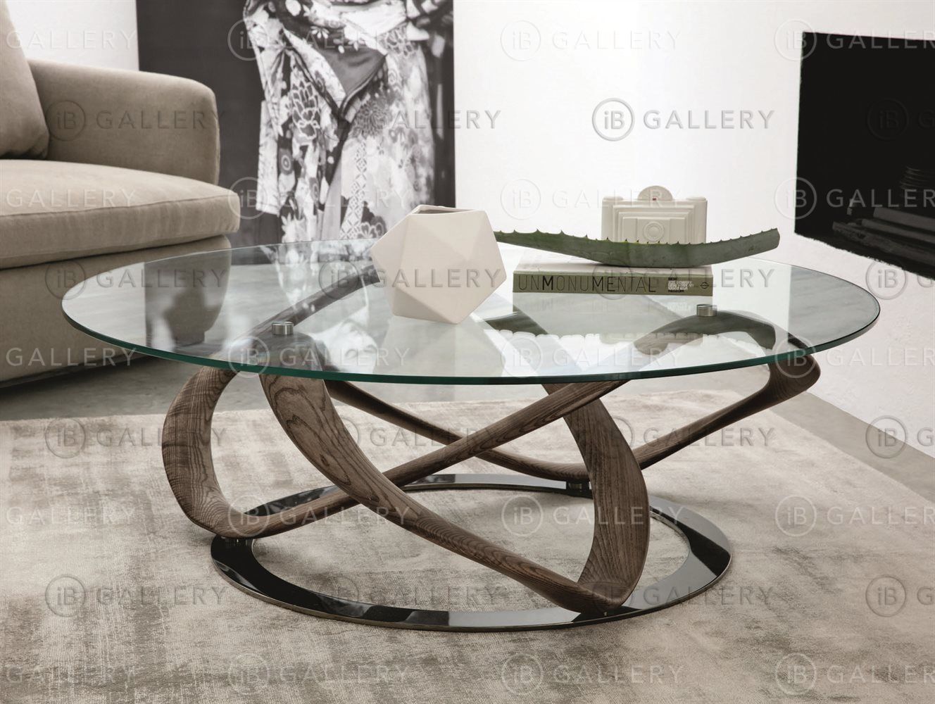 Журнальный столик с круглой или овальной столешницей из закаленного стекла толщиной 10 мм.