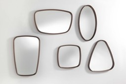Настенное зеркало широкое посередине и сужающееся к концам.