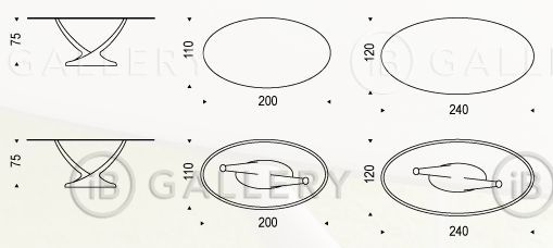 Обеденный стол с овальной стеклянной столешницей толщиной 15 мм. Столешница с матовым краем.