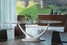 Обеденный стол со стеклянной столешницей на фигурном основании