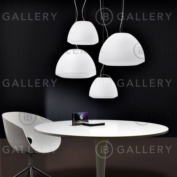 Светильник из белого выдувного стекла ручной работы мастеров-стеклодувов, с белой лакированной металлической опорой.