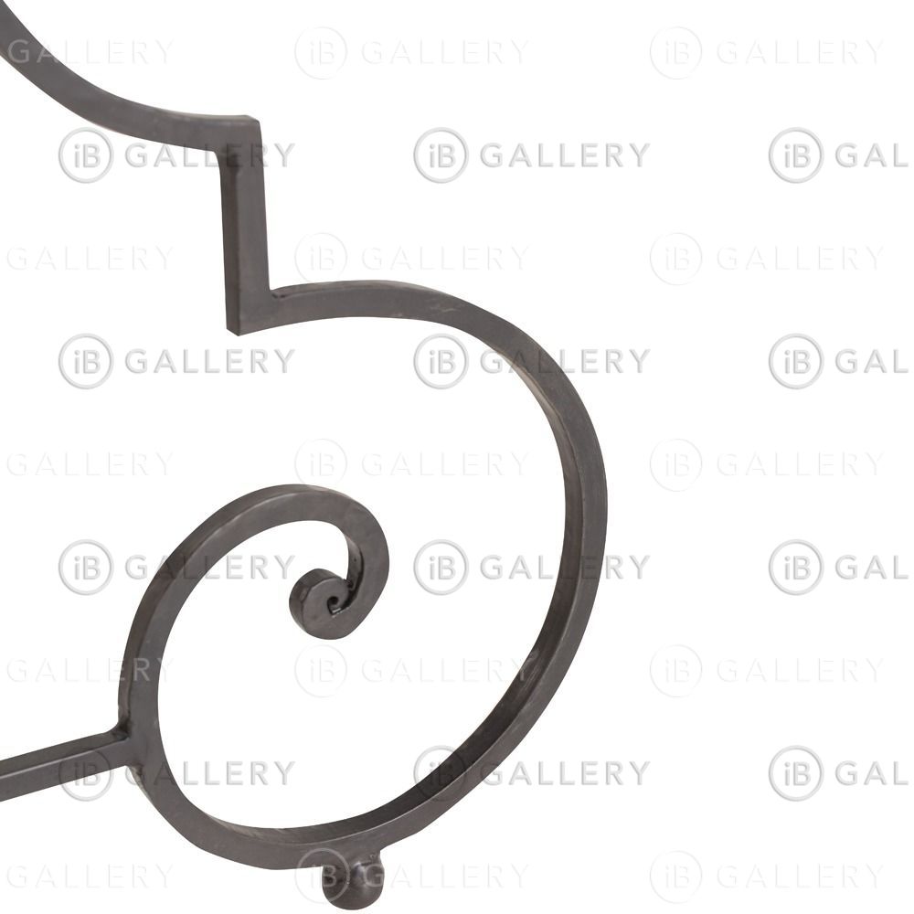 Стол имеет круглую столешницу. Стоит на трех изогнутых ножках. Стол доступен в большом размере. Основной материал - железо. Столешница имеет обрамление по всему периметру.