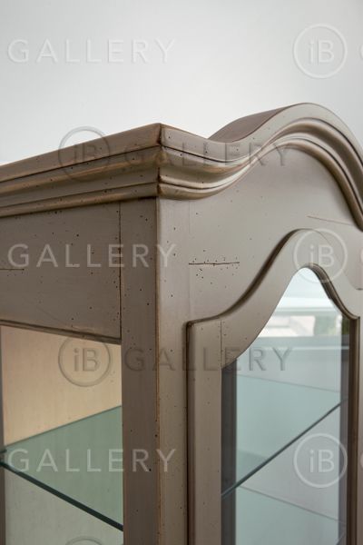 Однодверная деревянная витрина на ножках. Оснащена тремя стеклянными полками.