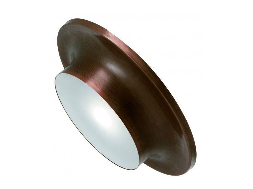 Потолочный металлический светильник круглой формы.