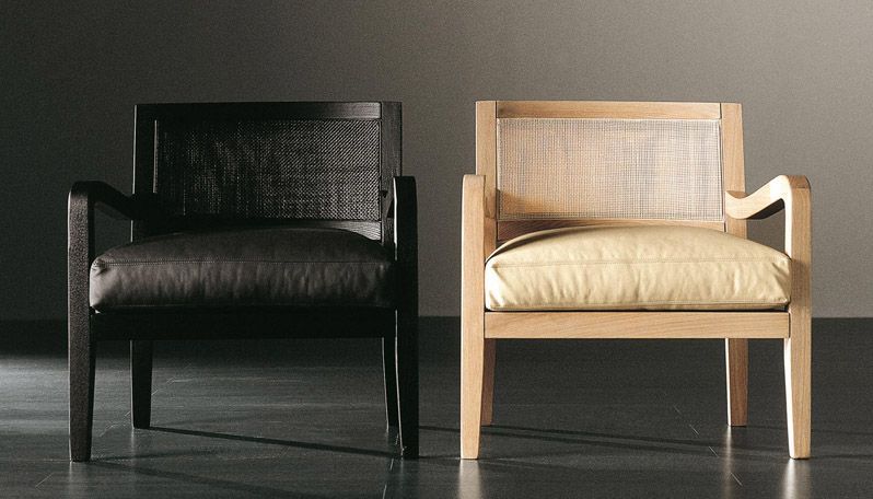 Невысокое кресло с деревянными ножками и подлокотниками.