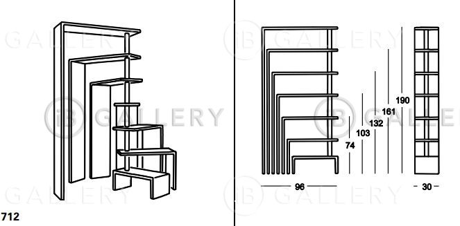 Книжный шкаф с вращающимися полками. Стойки и полки изготовлены из древесноволокнистой плиты средней плотности с внутренним усилением стальными уголками и покрыты устойчивым к царапинам тиснением в оттенках талька, конопли, амаранта, эспрессо или черного. Стальное шарнирное соединение.