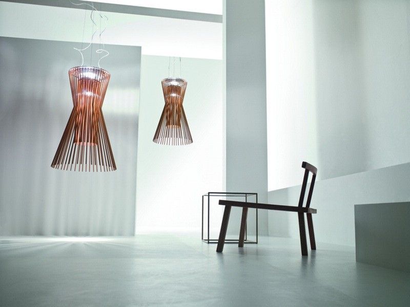 Подвесная лампа из окрашенного алюминия и лакированной стали.