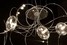Люстра с хромированным каркасом и стеклянными абажурами.