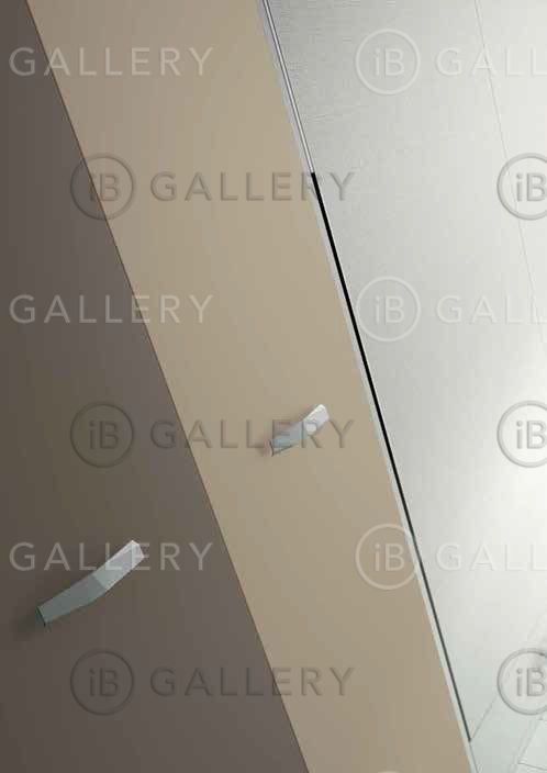 Мебель выполнена в светло-сером меламине, отделка деталей - лак бежевого и серовато-коричневого цвета.