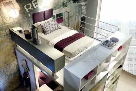 Данная композиция состоит из двух кроватей, высокого подиума, фронтального стеллажа Laltrogiorno, письменного стола и книжных полок.