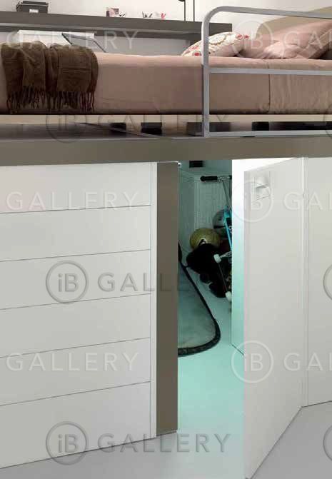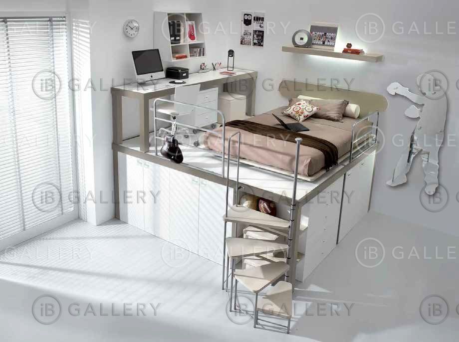 Данная композиция состоит из кровати, письменного стола, подиума, шкафа и полок.