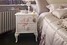 Данная композиция состоит из кровати с фигурным изголовьем в виде сердца, прикроватной тумбы, комода, шкафа с раздвижными дверками и мягкой квадратной банкетки.
