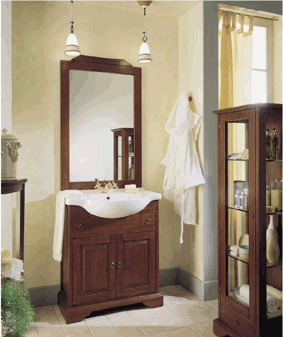 Тумба для раковины выполнена из древесины в коричневом цвете.