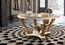 Столешница выполнена из стекла. Основание выполнено из дерева и украшено уникальной резьбой.