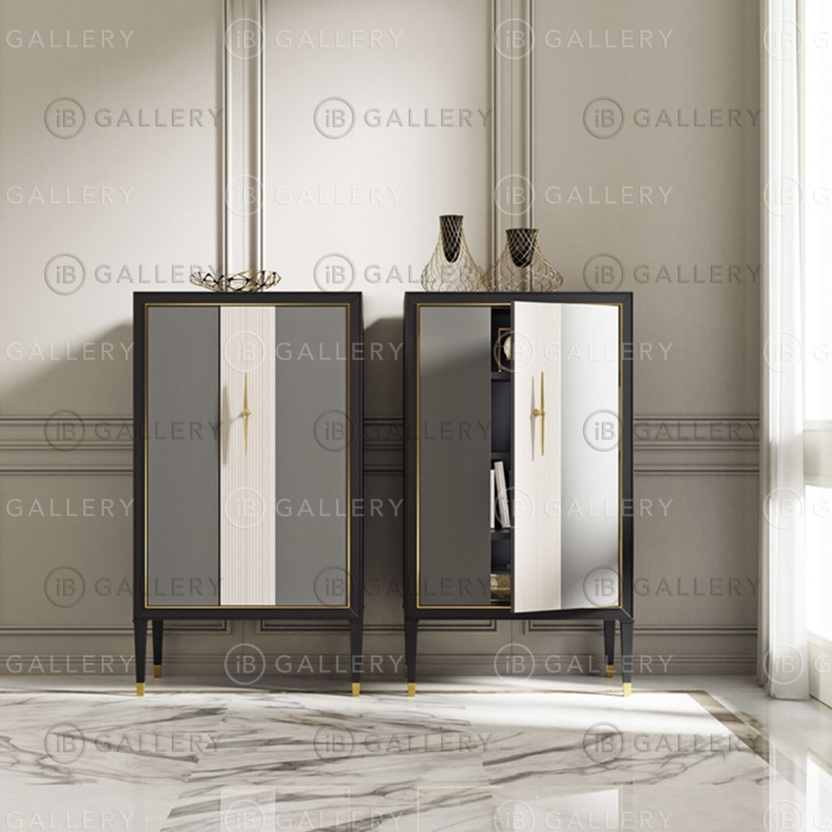 Сделан из вишневого дерева. Внутри расположены деревянные полки.