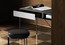 Оснащен выдвижным ящиком с 3 отделениями. Верхняя часть МДФ толщиной 18 мм в паре с каркасом из листового металла толщиной 3 мм из стали, окрашенной латунью, облицованной шпоном.