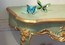 Настенная консоль с двумя закругленными ножками и лентой с фризами ручной работы, фигурная верхняя часть с краем с совиным клювом. Отделка ручной работы из гипса с верхним краем, фризами и рамами, покрытыми старинным золотым листом.