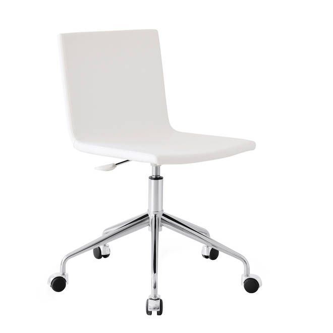 Элегантный стул с поворотным основанием на колесиках, который подойдет для дома и офиса. Высота сидения регулируется.