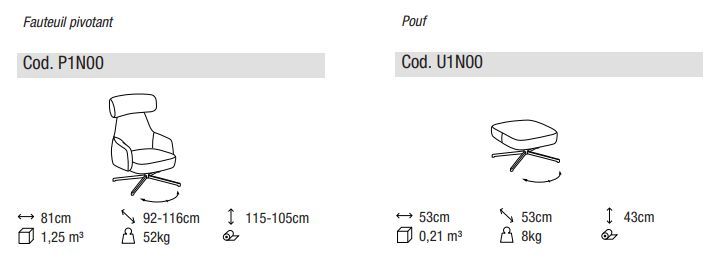 Вращающееся кресло с пуфом с отклоняющейся спинкой
