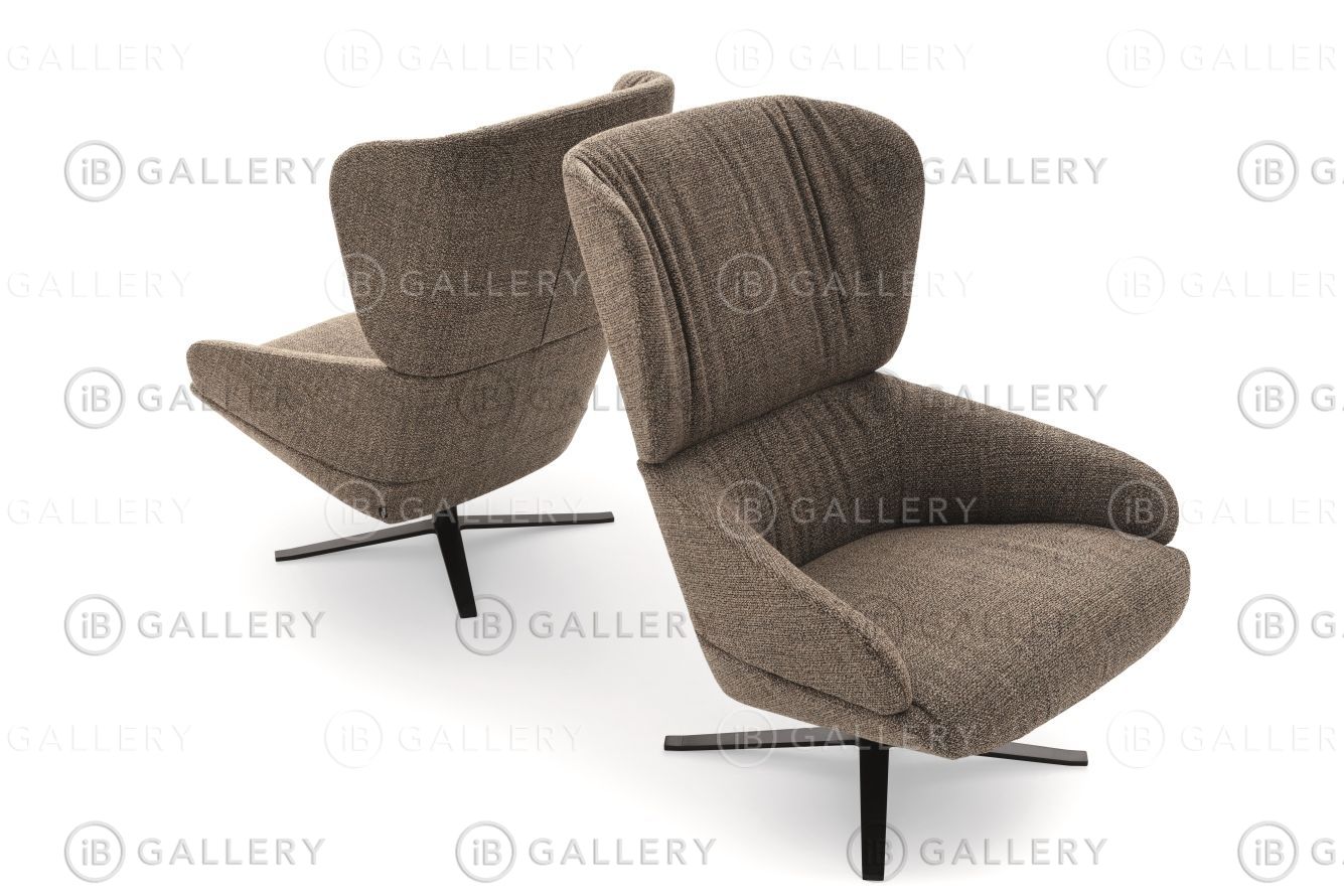 Удобное вращающееся кресло в обивке из ткани или кожи