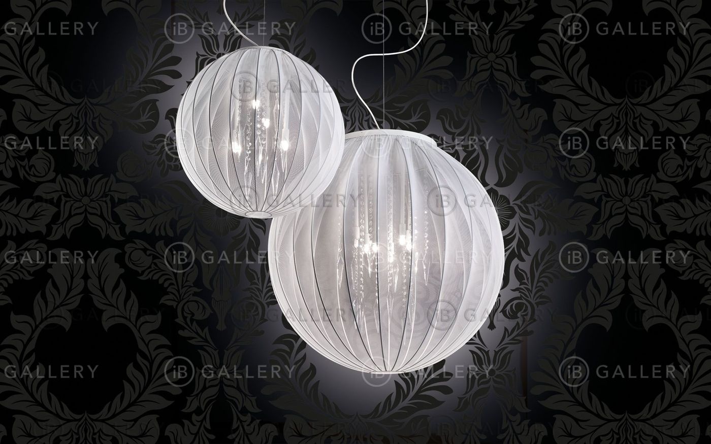 Металлический каркас в форме шара элегантно обтянут дорогой тканью.