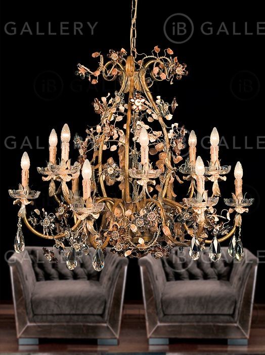 Люстра в кованом каркасе из 12 подсвечников выполненых в муранском стекле.