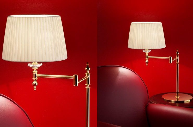 Лампа настольная с классическим абажуром из ткани с возможность поворота.