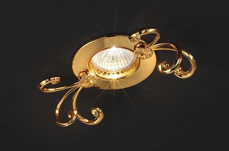 Точечный светильник с белым матовым плафоном в позолоченной отделке.