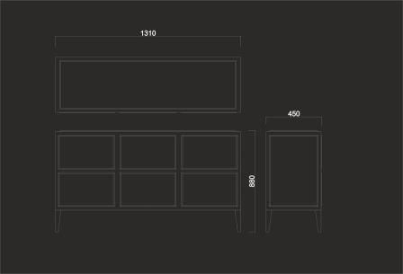 Комод имеет 2 выдвижных ящика в центре и 2 двери по краям. Боковые двери открываются нажатием.