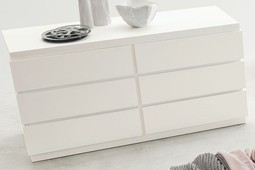 В спальне имеется большая двуспальная деревянная кровать с высоким мягким изголовьем со специальными встроенными полками, которые заменяют прикроватные тумбочки, а также один широкий и один высокий комод.