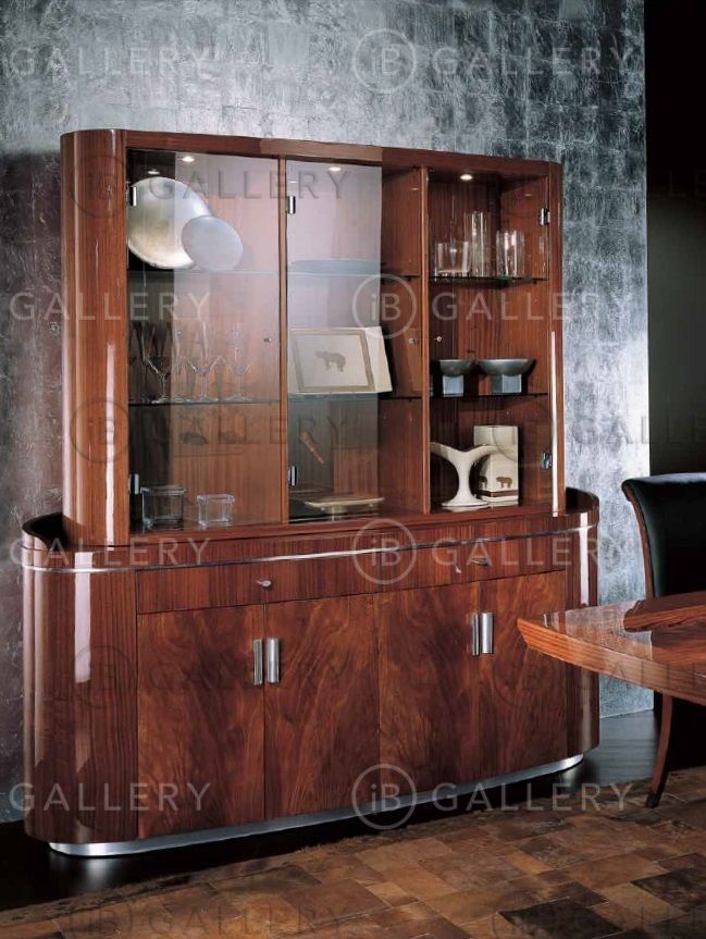 Овальный буфет из комбинации двух пород красного дерева. Полированные стальные ручки и детали.