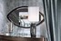 Настенное зеркало овальной формы с полированными хромированными деталями.