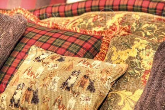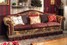 Большой мягкий диван. Каркас из натурального дерева. Текстильная обивка из натуральных тканей. Сиденья обиты тканью с клетчатым рисунком. Этой же тканью декорированы передняя часть подлокотников и верхняя часть спинки дивана. Основной рисунок обивки - цветочный орнамент на бледно-зеленом фоне. Основание сиденья украшено декоративной бахромой.