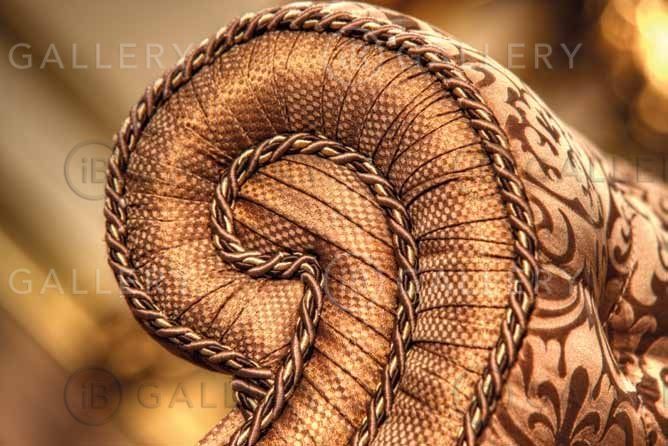 Диван глубокий и мягкий, обивка выполнена в богатых коричневых цветах. Оригинальный орнамент на всей обивке дивана, кроме задней части.