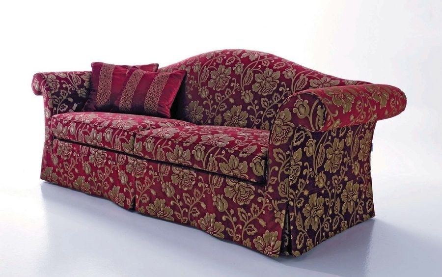 Обивка из натуральных тканей, с крупным цветочным рисунком.