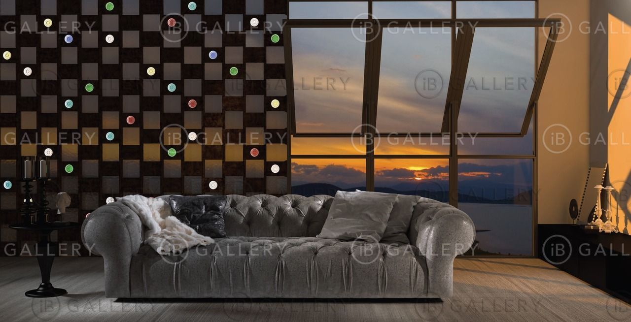 Диван почти полностью украшен декоративной стяжкой капитоне.