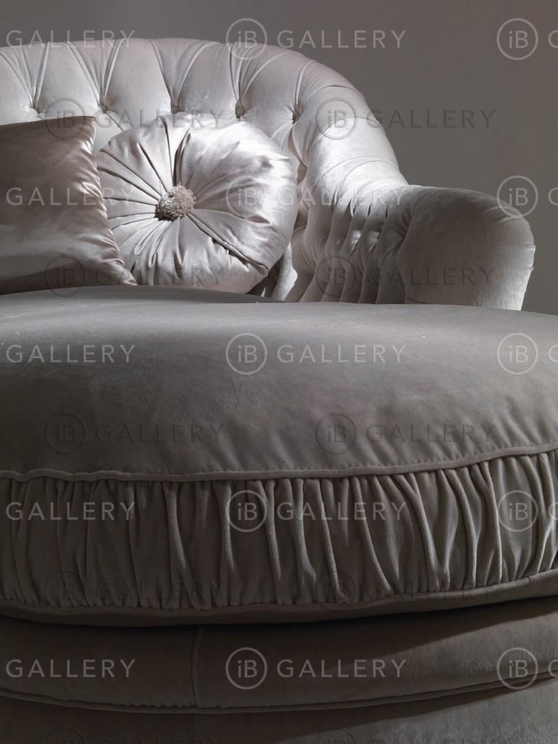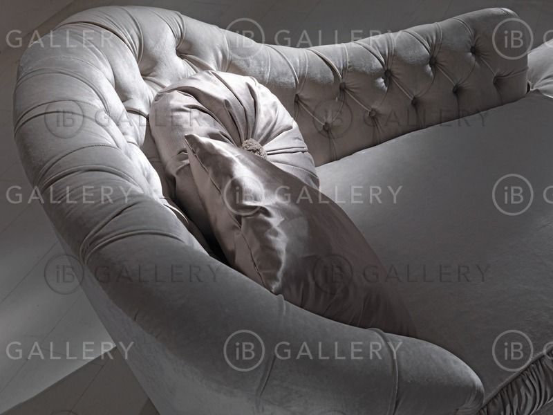 Элегантная и мягкая кушетка на скрытом каркасе из натурального дерева. Низкие ножки округлые, покрыты серебрянкой.
