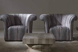 Спинка и подлокотник округлой форму, украшены декоративной стяжкой.