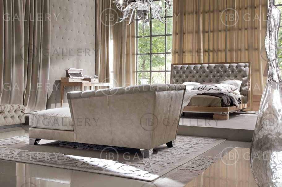 Дополнительную элегантность кушетке придают ножки из хромированной стали.