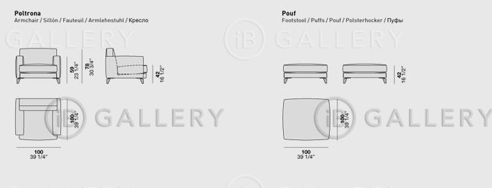 Серия дополнена угловыми модулями, шезлонгами, креслами и пуфами.