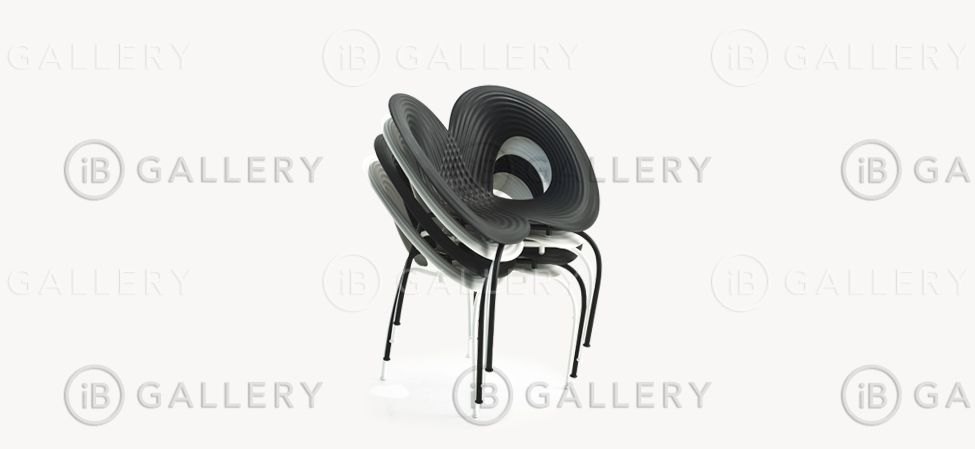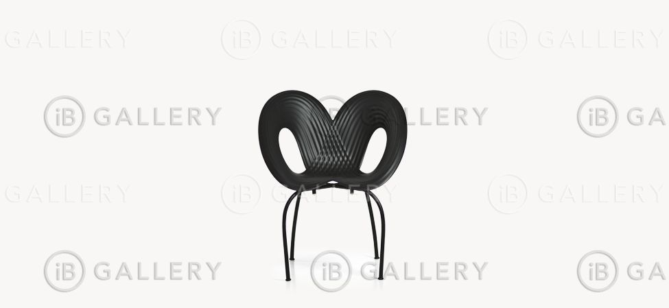 Необычный стул с потрясающей фигурной спинкой, имитирующей знак бесконечности, но в новой, неожиданной интерпретации. Модель декорирована элементами, напоминающими следы волн на песке.