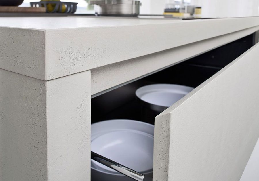 По каталогу производителя доступен огромный выбор вариантов отделки, включающих в себя натуральную древесину различных сортов, а также синтетические материалы, мрамор, кварцит, акрил гранит, разновидности стекла и металла (в том числе алюминий и нержавеющую сталь).