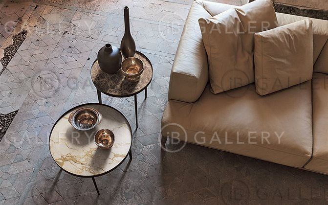Круглый кофейный столик с основанием из алюминиевого литья и различными вариантами исполнения столешницы