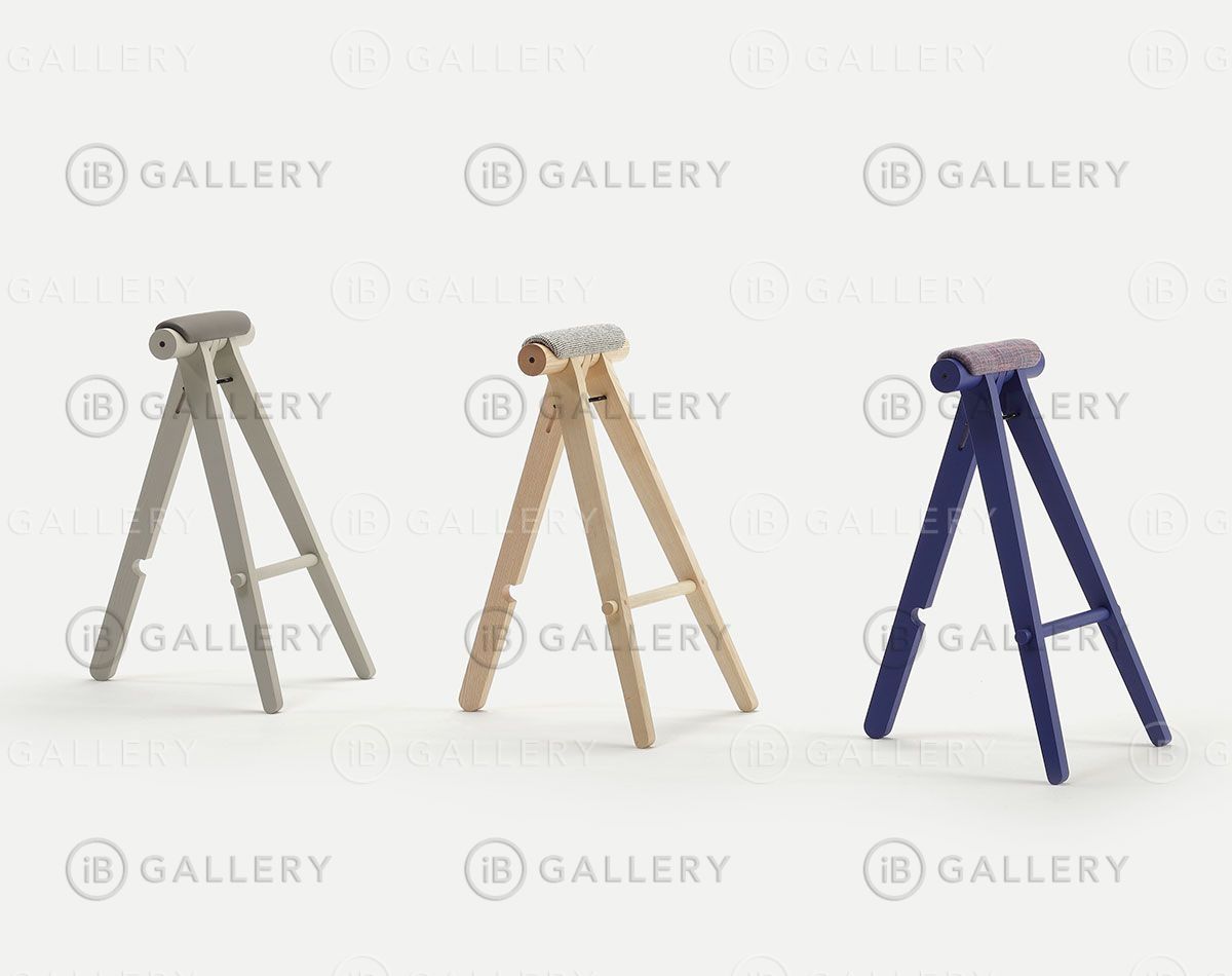 Это табурет, который можно сложить, когда он не используется. Структура выполнена из ясеня и может быть окрашена в любой из следующих цветов: клейн, серый шелк, манго, малахит, антрацит или натуральная матовая отделка. Сидение из ткани.
