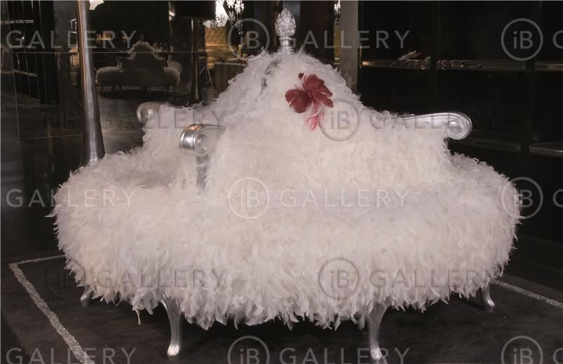 Круглый четырехместный диван с кожаной обивкой Las Vegas col. Avorio cat. 800 и декорированной фурнитурой.