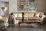 Диван со стеганной спинкой, выполненный в текстильной обивке.
