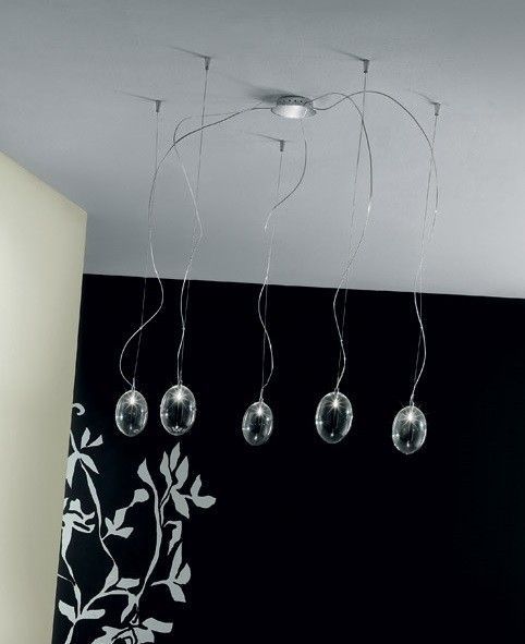 - Потолочный светильник, оборудованная рассеивателями в форме эллипсоидов, поодиночно закрепленных на подвесной конструкции.
