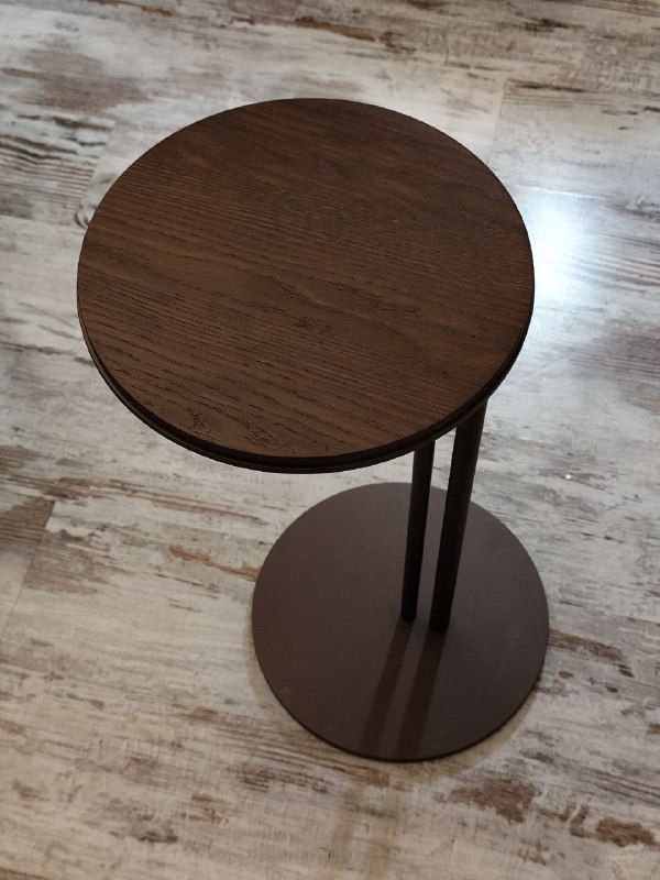 - Круглый стол на металлической ножке со столешницей из мрамора или дерева