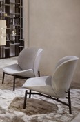 - Кресло с пуфом для ног в обивке из ткани или кожи